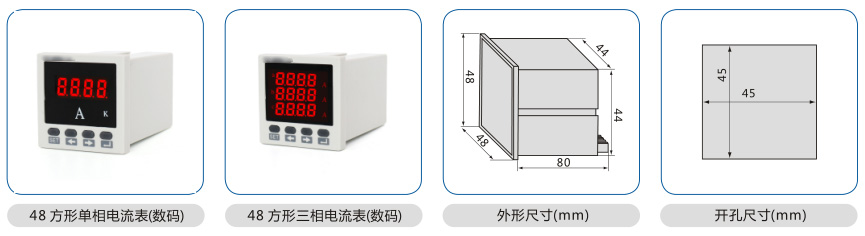 数显电流表是我公司研制的数显电测仪表经验及充分研究国内外产品、用户需求和高低压配电的基础上研制而成的新一代电测仪表。基本最新MCU微处理器技术和模块化结构,产品具备高抗干扰性高稳定性,高精度等特点。适用于配电系统的单相和三相电流参数测量。该系列仪表变比可调,支持开关量输入、继电器输出、模拟量输出及通讯(RS485Modbus-RTU协议),提供多种不同的安装尺寸,可直接替代模拟指针电流表,更广泛的适用于各种控制系统(SCADA、DCS等)。
